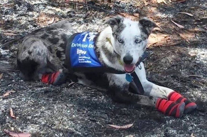 O filhote está trabalhando ao lado de equipes de resgate do Fundo Internacional para o Bem-Estar Animal. Ele foi transferido para as áreas declaradas seguras e toda vez que detecta a presença de um coala, senta-se e permanece imóvel para sinalizar seu parceiro humano.